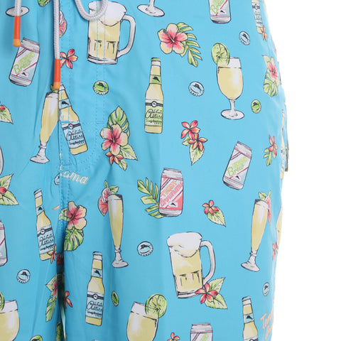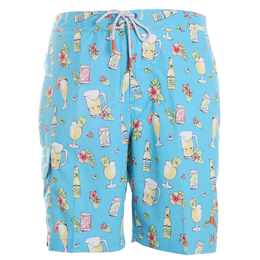Crafted from a recycled polyester blend, this stylish pair of swimming trunks by Tommy Bahama features a funky and cool sunset palm fronds print. Combine the Baja Tommy Brewhama Swimming Trunks with a graphic tee and a pair of sandals for an effortless look.