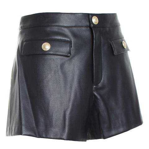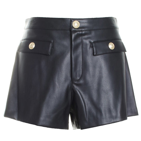 Crafted from vegan leather, the Dionne shorts by L'Agence are for the ultimate good girl gone bad! Featuring gold-tone metal hardware, these shorts are chic and bold. Combine with a blouse and heels for the perfect autumn look.