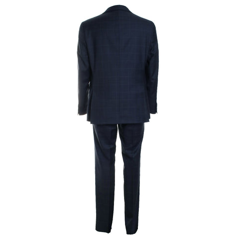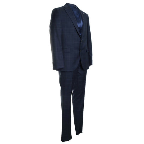Crafted from fine wool, this plaid suit by Jack Victor exudes a sophistication that every man should have in his wardrobe. Woven in icy shades of blue, this suit looks great when combined with a crispy white shirt, a tie, and leather oxfords.