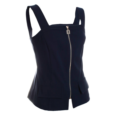 Keep it fun this spring and summer with this fitted peplum zipper top by Joseph Ribkoff. Crafted into an symmetrical silhouette and made into a zipper-front design, this top looks great with a pair of pants, a blouse, and heels.