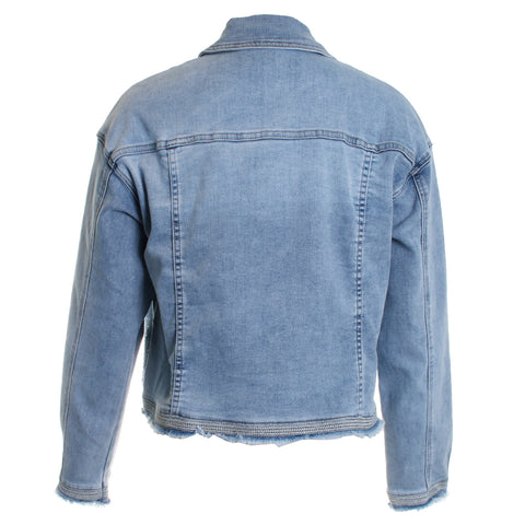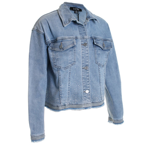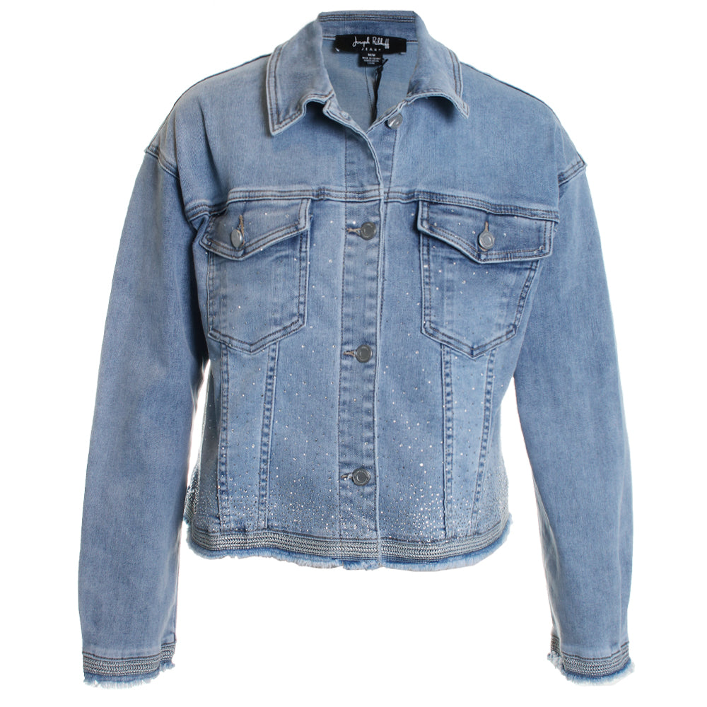 Keep it fun this spring and summer with this Denim Rhinestoned Jacket by Joseph Ribkoff. Crafted into an symmetrical silhouette and made into an open-front design, this jacket looks great with a pair of pants, a blouse, and heels.