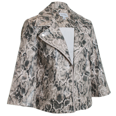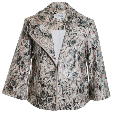 Crafted from iridescent vegan leather and molded into a biker jacket silhouette, this jacket by Joseph Ribkoff is timeless and effortless. Create a sophisticated look by combining this moto jacket with a pair of skinny jeans and heels.