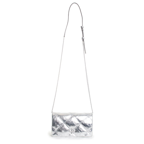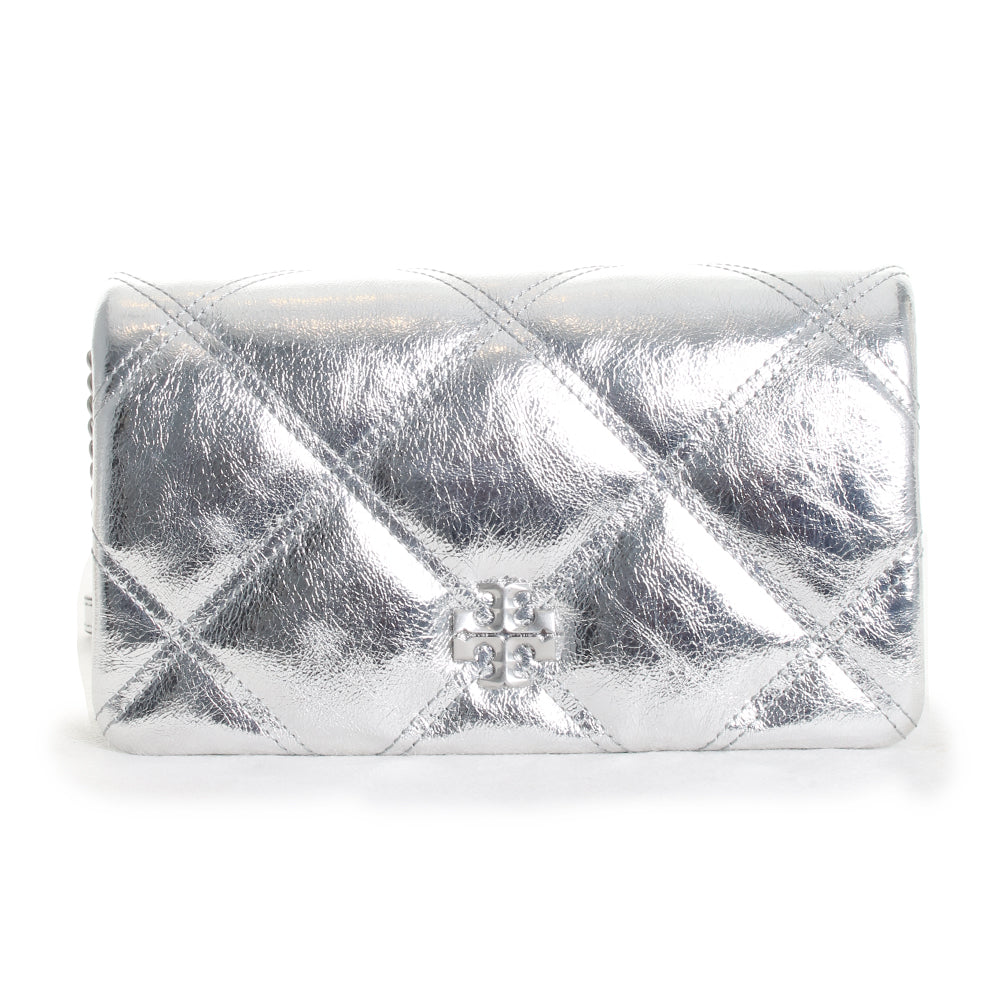 Keep it fun and flirty these warm summer months approaching with the Kira Metallic Diamond Quilt Chain Wallet by Tory Burch. Featuring a gold tone metal logo detail and quilting, this handbag was crafted for the girl who likes to keep her fashion sense fun.