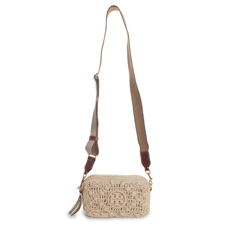 This classic small Miller Raffia Mini Crossbody by Tory Burch is sophisticated and versatile. Wear it either at at the workplace or while you're running weekend errands.