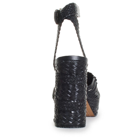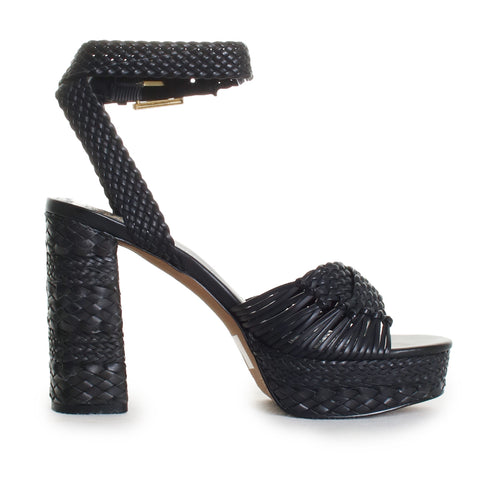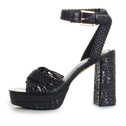Crafted from fine interwoven leather, the Pessa Platform Heeled Sandals by Vince Camuto are effortlessly chic and bold. Featuring a chunky and tall heel and an intricate woven leather body, these high heels are ideal for expressing the adventurous woman within. Combine with a mini skirt, and cheeky tank top, and a clutch or handbag for a bold early aughts aesthetic.