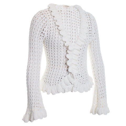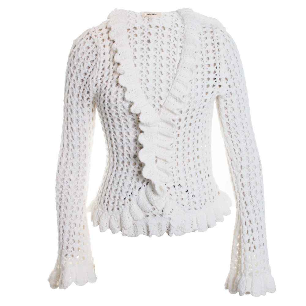Featuring a long ruffled sleeve and pointelle knit, the Solaris Open Stitch Cardigan Sweater by L'Agence is effortless and sophisticated. Combine this top with a pair of jeans and boots for an easy and swift aesthetic.