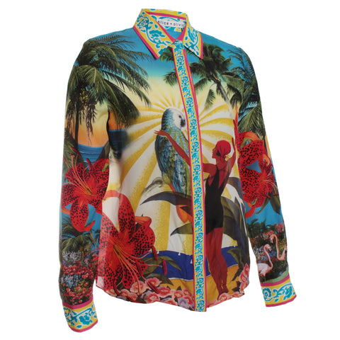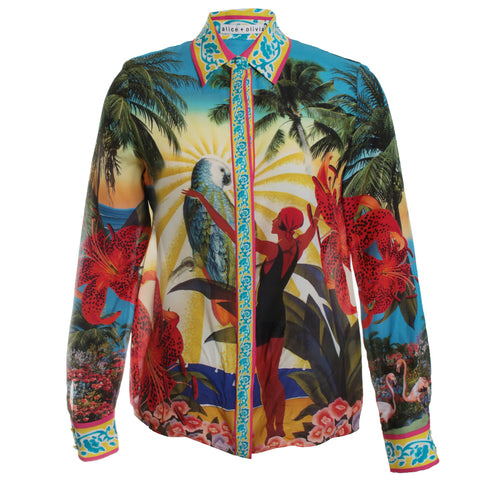 Bring some silky elegance into the fashion fold of your life with the Willa Placket Top by the timeless Alice + Olivia. Combine this bold blouse with a pair of pumps and a plain pair of denim jeans for a cool, feminine, and chic look.